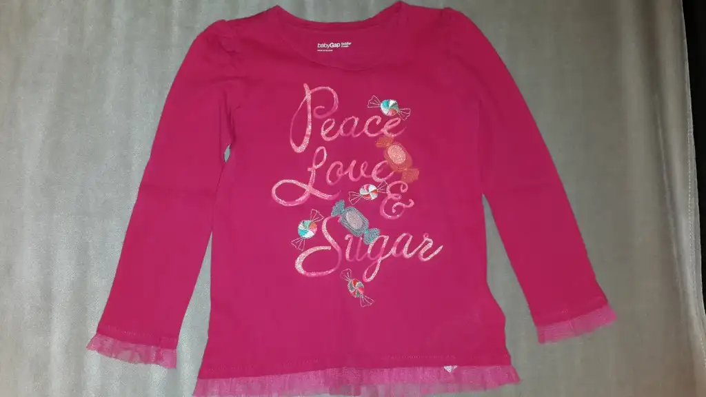 ...Uzun kollu üstler 10 lira hırka da 15 lira. Markalar gap panco Benetton. Daha önce bu üstlere benzer 6 parçayı 65 liraya bi arkadaşa sattım. Yani 55 oluyor. 50 lira bu seferlik olsun. Ve de hediye t-shirt ler.