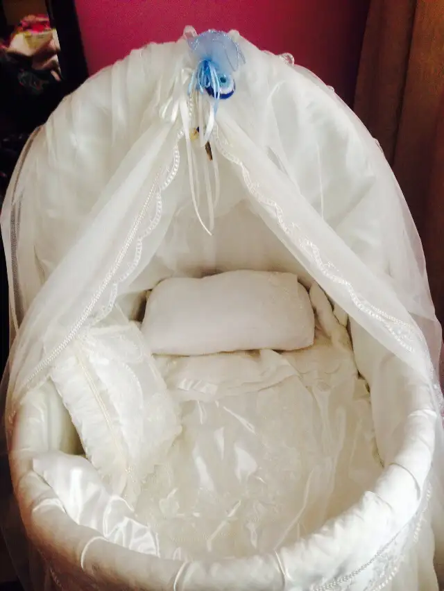 Ben satıyorum hala lazımsa bana msj atın 2 adet yastık , 1 adet altın yastığı, yorgan ve 1 sepet eşyalarını koymak içintemiz kullanılmış bambu beşik arıyorum. yatağı nevresimi dahil olan.