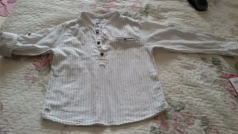 3- 3-4 yaş yazlık hakim yaka Zara marka krem çizgili gömlek ( hiç kullanılmamış sadece etiket yok) 15 tl