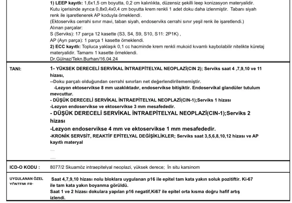 kronik servisit için antibiyotik ve fitil verir sanıyordum ama jinekoloji onkoloji bölümünde Prof. Dr hücrede bozulmalar var dedi leep yapacağız dedi çok şaşırdım.