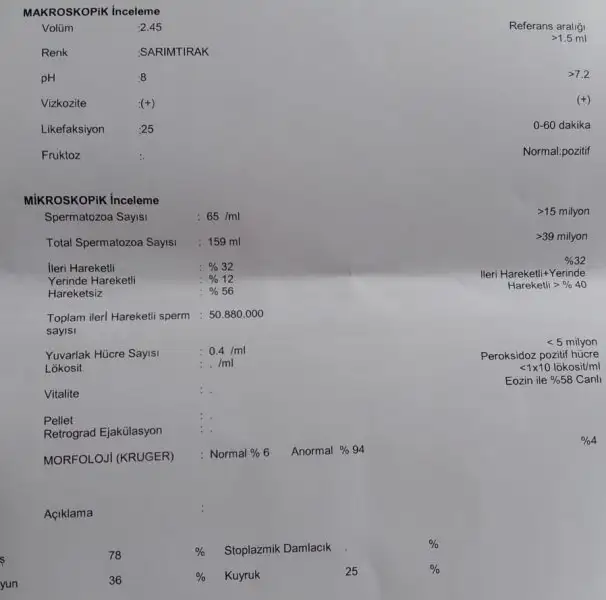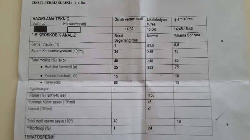 Sanirim morfolojisi biraz dusuk diger degerler iyi gibi geldi bana.doktorunuz ne dedi?