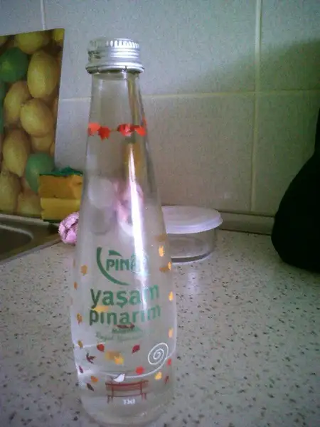 Kızlar bu pınarın 33 cl lik cam şişesi, günde 8 tane bundan bitiriyorum, 2,5 lt e falan geliyor