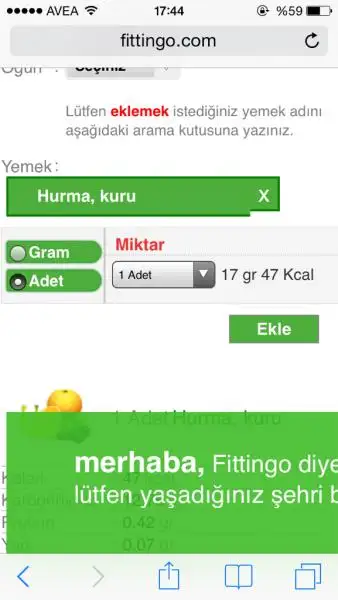 Olsun o kadar kasma acıkırsanda bence 1 meyve ye listeye uyabildin mi?