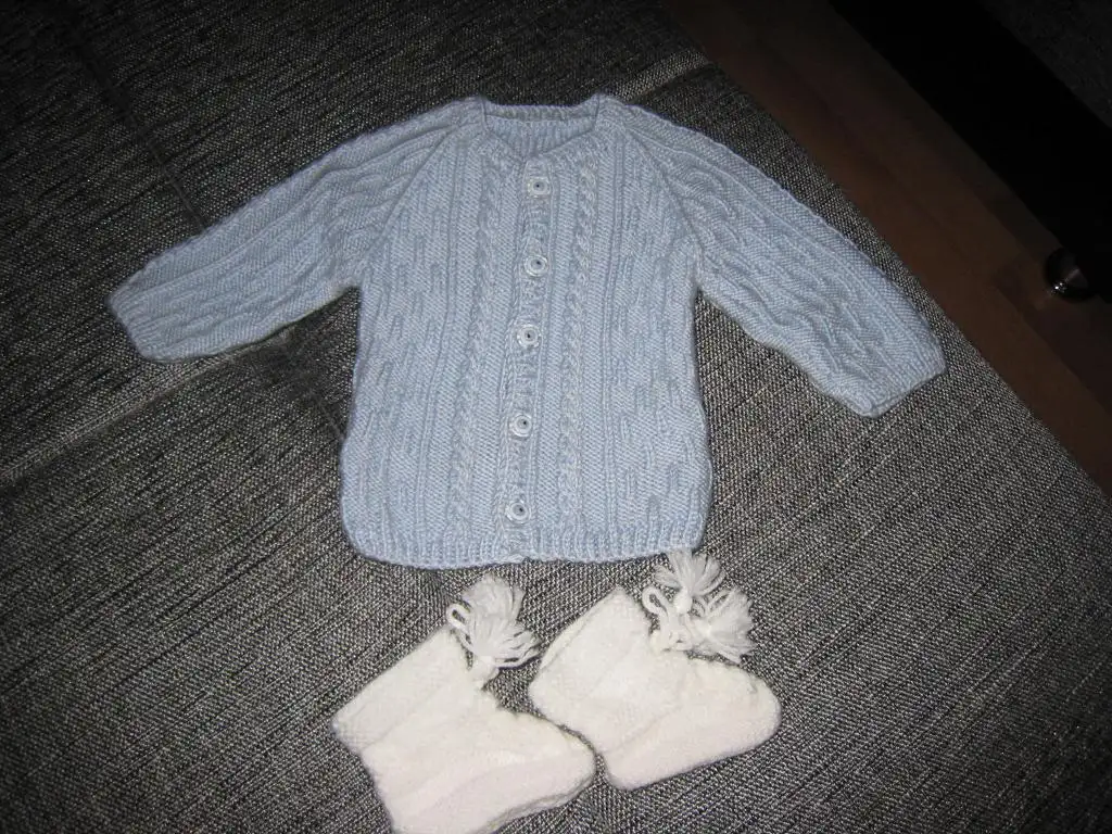 Kızlar, bebişime gelen hediye örgü ceket ve patiğin resmi. patik normal ama ceketin örneği belki ilginizi çeker