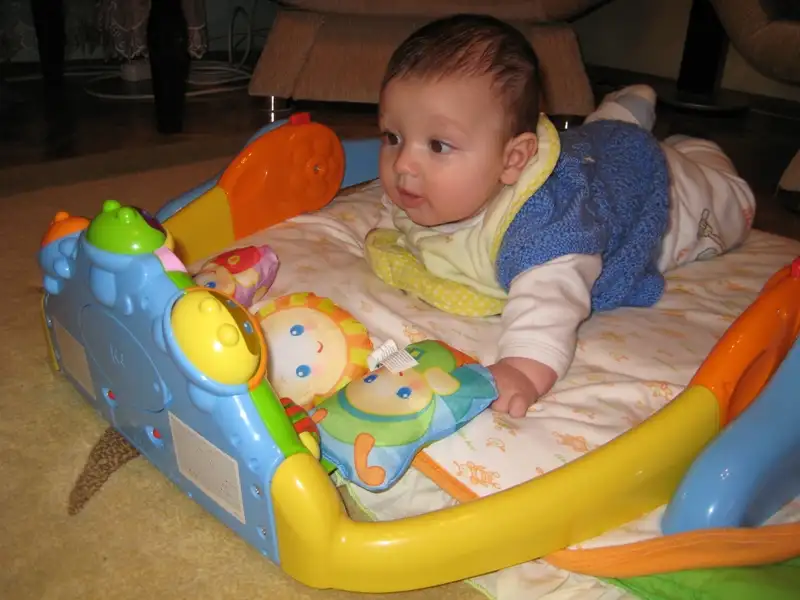 bebek hem yüzükoyun yatarken oynuyor hemde sırt üstü yatarken oynauabiliyo