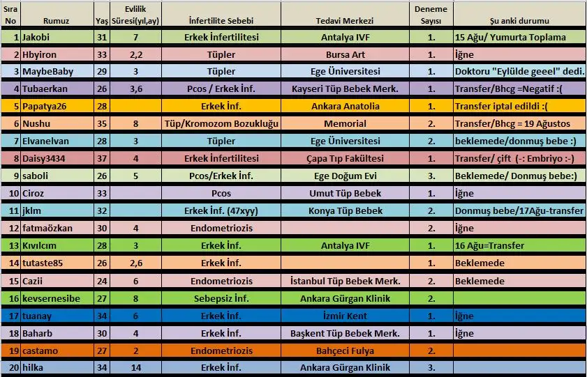 Kıslar, listemizin güncel halini yükledim, yeni arkadaşlar bilgilerini ve süreçlerini bizimle paylaşmak isterseniz buyrun, yerimiz müsait