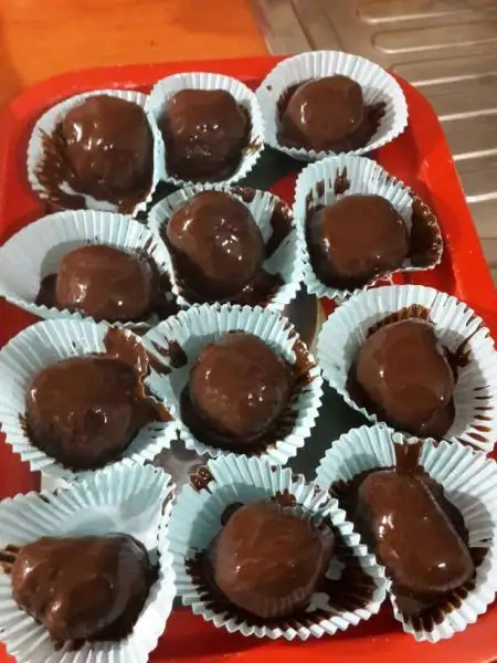 daha sonra kekten ceviz büuüklüğünde parçalar koparıp elimizle yuvarlayalım ve ufak boy kek kağıtlarına toplarımızı koyalım. Buzdolabında iyice soğumasını bekleyelim