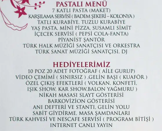 manolyanın pastalı menüsü bu ve bana 3bin tl ye geldi