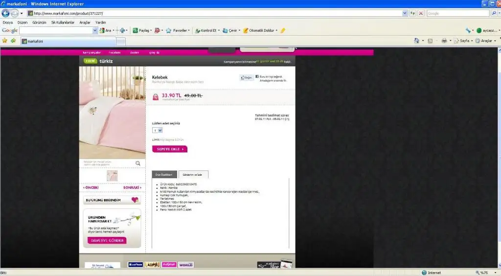kızlar Markofoni de Nevresim takımı buldum..33.90 TL diyo..:26: