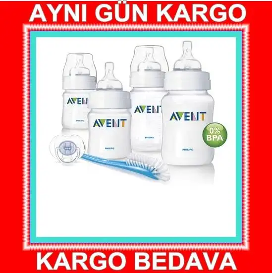 Ekstra yumuşak Yenidoğan AirflexTM biberon emzikleri ile birlikte dört AVENT Biberon içerir.