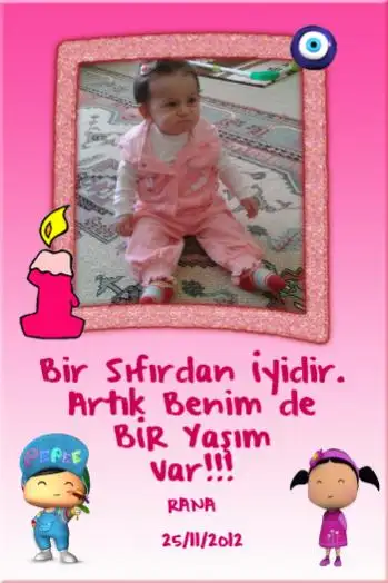 Rana hayatımda bencillik yapmadığım tek varlık.. fedakarlığımın hat safhası.. canımdan can... ben de anne olmanın sevinci hala ilk günkü gibi.. ve kızım bugün artık tamamen yürüyor.. yaşını karşıladı demek buymuş