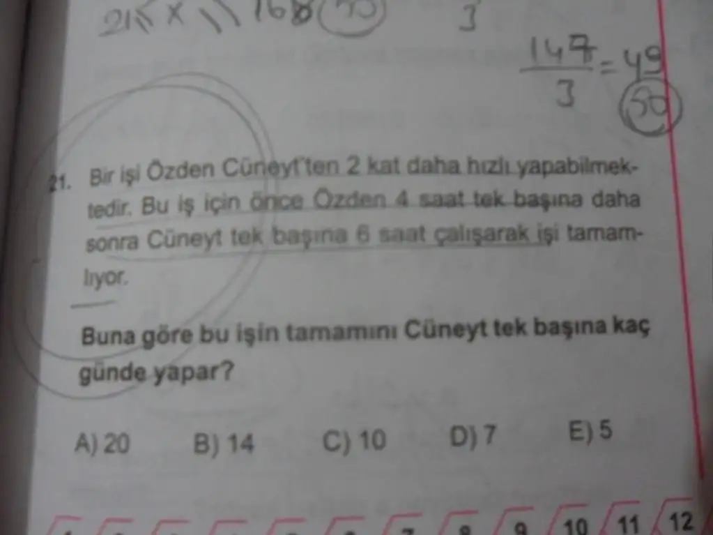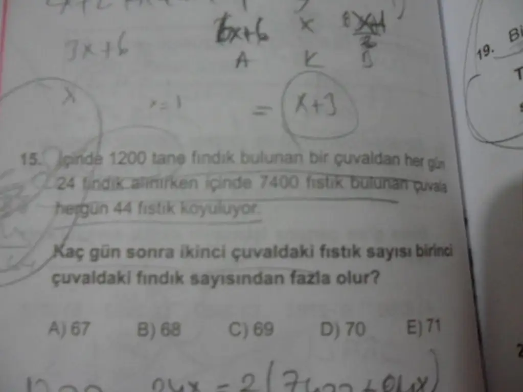 15. soruda 1200 rakamının 12000 olduğunu kabul ederek çözersek cevap 68 çıkıyor. 1200 rakamı doğruysa soru yanlış