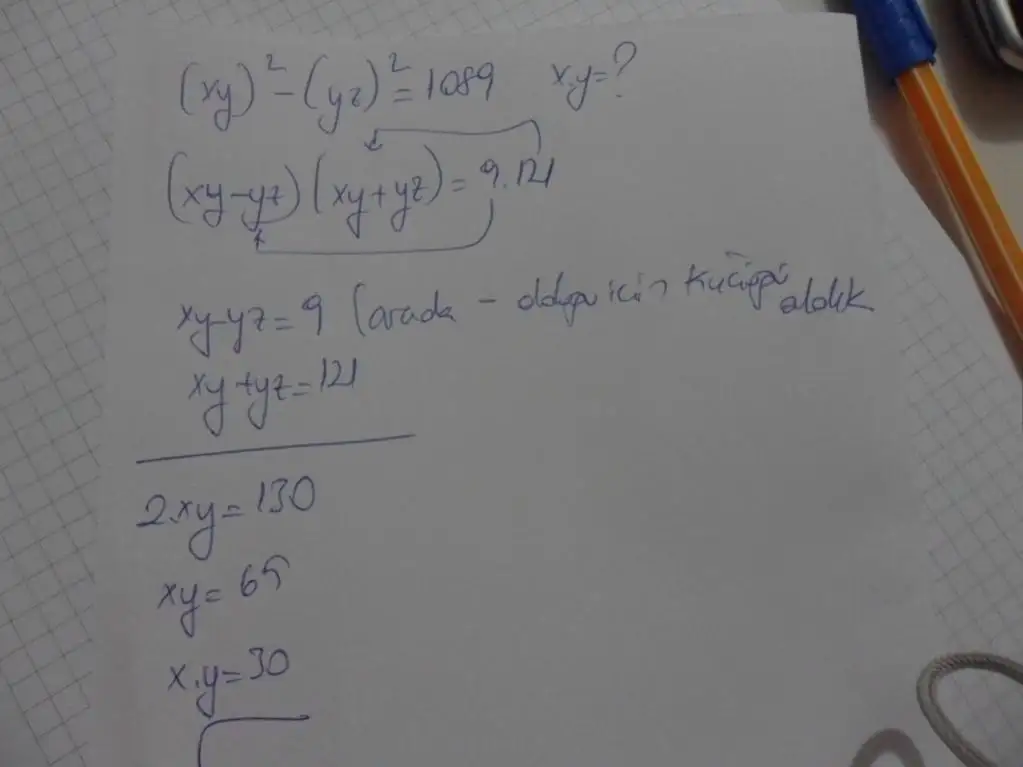 en küçük dediği için kökten kurtarmak için 15 ile çarpmam gerekiyordu yani y=15 oldu.