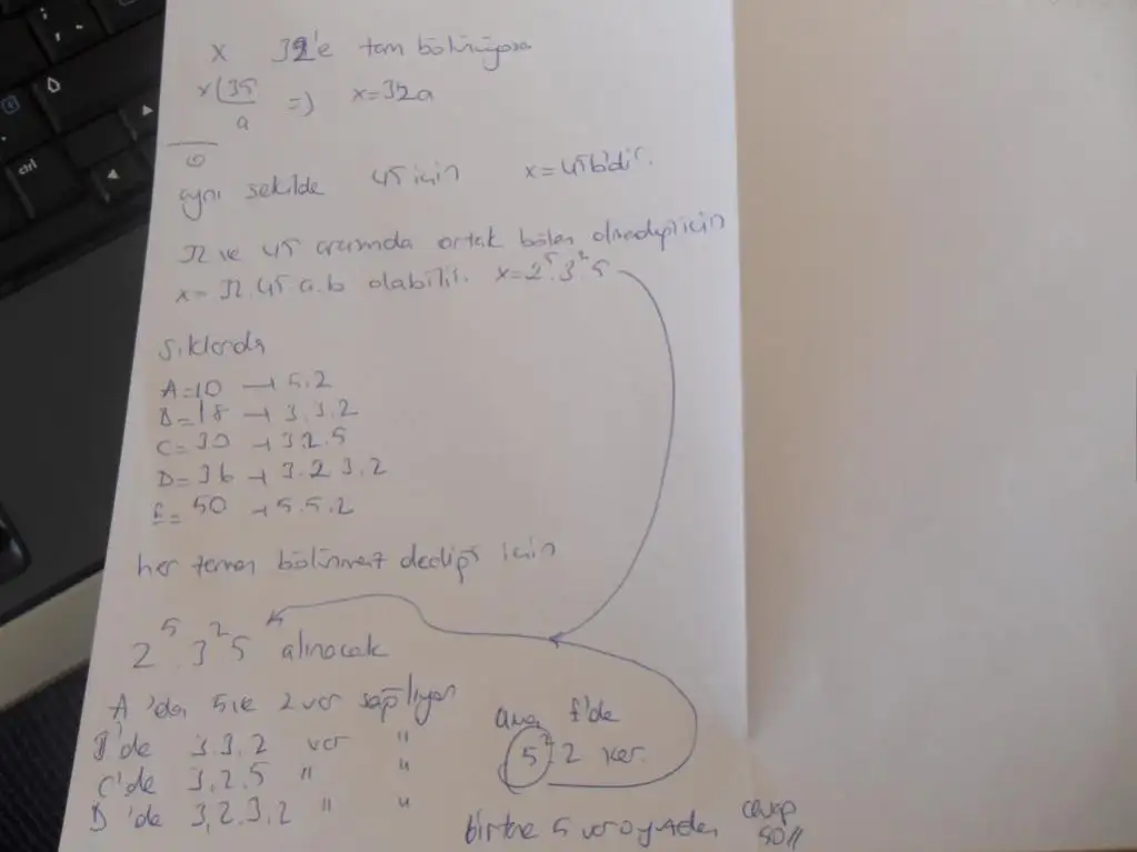 bide 45 e bölünce x=45b diyelim 45 ve 32 arasında ortak bölen olmadığı için x en az 32.45.a.b olabilir