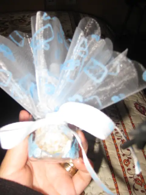 ben eve doğumdan sonra gelenlere dağıtmak üzere çikolata hazırlatıcam. mevlüt için de şeker düşünüyorum. mevlütte çikolataya gerek yok bence. zaten bebek şekerleri en azından benim istediklerim yenebilir tipte olmuyor, magnet şeklinde yaptırmayı düşünüyorum. hatta içinde şeker yerine lavanta bile olabilir. bir de ayrıca güllü lokum dağıtılıyor bizde.