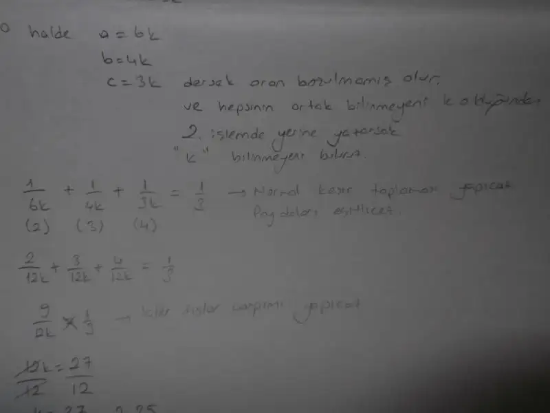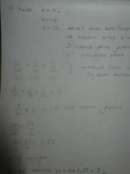 böylece elimde x,y,z gibi 3 bilinmeyenli harf yerine tek bilinmeyen k olmuş oldu