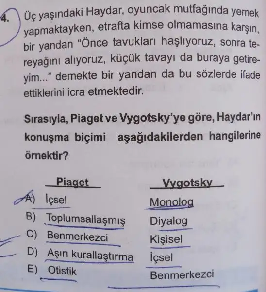 benmerkezciyi anlamşsındır zaten kuzu vygotsky de monologa özel konuşma yani kişisel konusma diyor. oradan geliyor