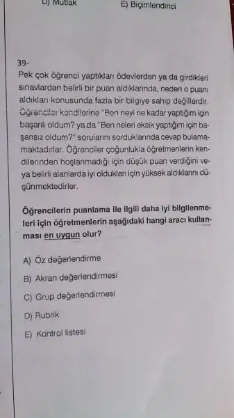1) Beyin temelli öğrenmede, öğrenmelerin istendik düzeyde gerçekleşmesi için birey en fazla şağıdakilerden hangisinin desteğine ihtiyaç duyar?