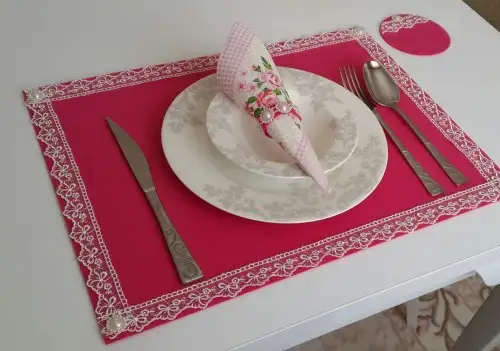 Ama şöyle düşün amerikan servisler genelde dikdörtgen şeklinde oluyor ya öyle yaparsın sen de..Bence yuvarlak tabaklara da olur dikdörtgen olan ..Mesela şunlar gibi düşün..Bu kare olan çok kolaymış da yuvarlakları becerebilir miyim bilemiyorum şimdi daha detaylı inceleedim:) Ben günlük yemek takımıma yaparım yaparsam o da yuvarlak tabaklar
