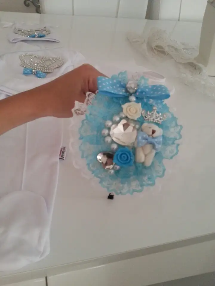 ayy çok tatli olmuş kiiüstlerindeki aksesuarlar haziran sanirim silikonla yapistirdin. Tüller yuvarlak miydi sen mi büzdün canim? Ben ismek kursuna gitmiştim de bu tarz şeylere biraz becerim var yapabileceğimi düşünüyorum benim de oğlum olacak çok beğendim eline sağlık güzel bir ornek oldu bana :)