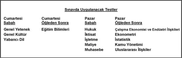 [td]MATEMATİK: Temel Bilgiler ve İşlem Yeteneği, Temel Kavramlar TÜRKÇE: Sözcükte Anlam, Cümlede Anlam TARİH: İslamiyet Öncesi Türk Tarihi, İslamiyet Dönemi Türk Tarihi, Türkiye Tarihi, Osmanlı Kültür ve Uygarlık, Osmanlı Islahat Hareketleri [/td]