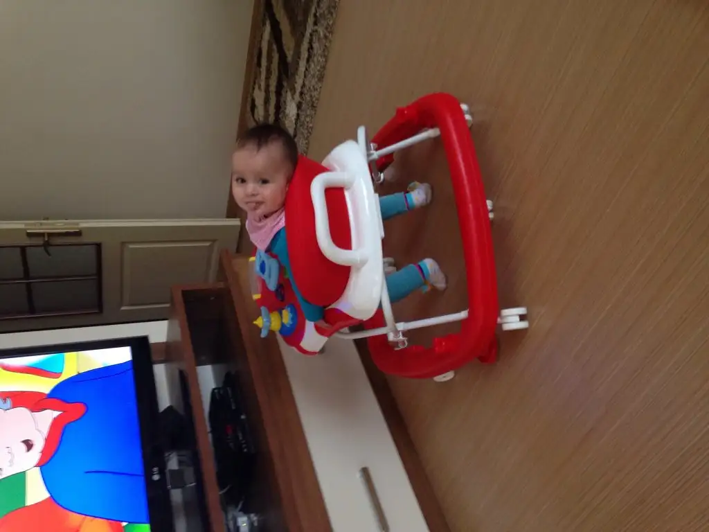 Gökçe yürüteci ile geri geri gidiyor sonra hızlıca tv ünitesine çarpıyor :/ ve bunu yapmayı çok sevdi.sanırım tv yi monte etmek gerekecek. Bide Gökçe dediğim Zaman bu şekilde bakıyor şımarık şey :)
