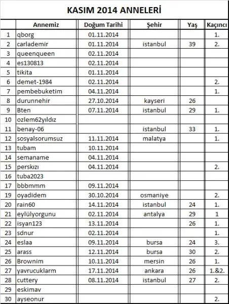 kazene (konu sahibine) özelden msj at ve konuyu devralmak istediğini söyle ozaman konu sana geçecek ve ilk msjı değiştirmme hakkına sahip olacaksın tablo oluşturma kısmından tablonu yaparsın gelenler oldukçada eklersin hem liste ilk sayfada durur yoksa diğer sayfalarda kaybolur liste kimse bulamaz.örnek 2014 ekim annelerinin ilk sayfasına bak.