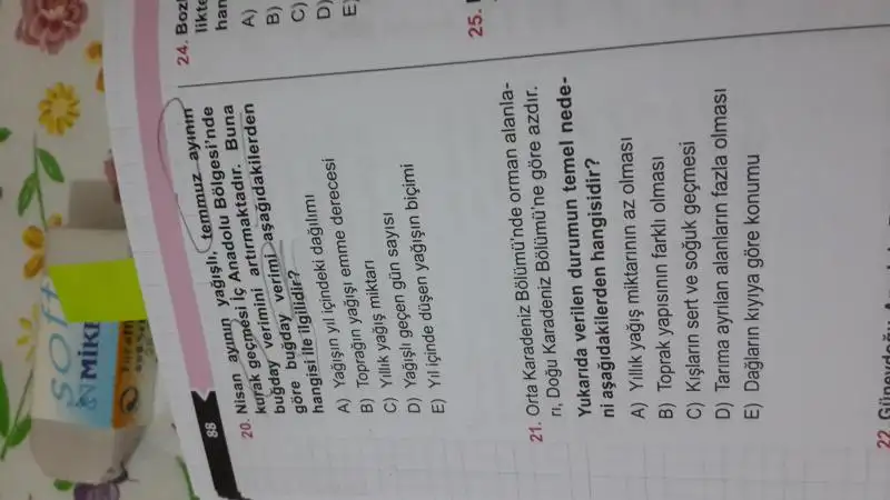 İkinci soru dogu anadolu bölgesi. e sıkkı gibi geldi. yükselti fazla. tarım alanı az. ayrıca soguk. ılıman degil.