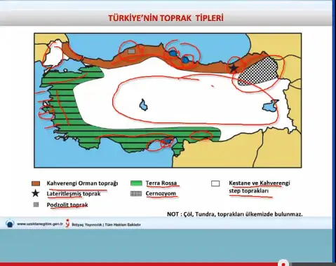 Çernezyom toprakdı sanırım :) bide terra-rosa var o da akdenizdeydi galiba çoktandır çalışmıyorum karıştım iyice :)