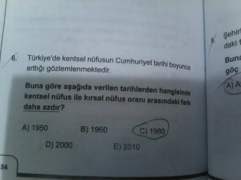Bu tabloya göre 85 görünüyor. Ama şıklarda 85 olmadığı için en yakın olan 80 denebilir
