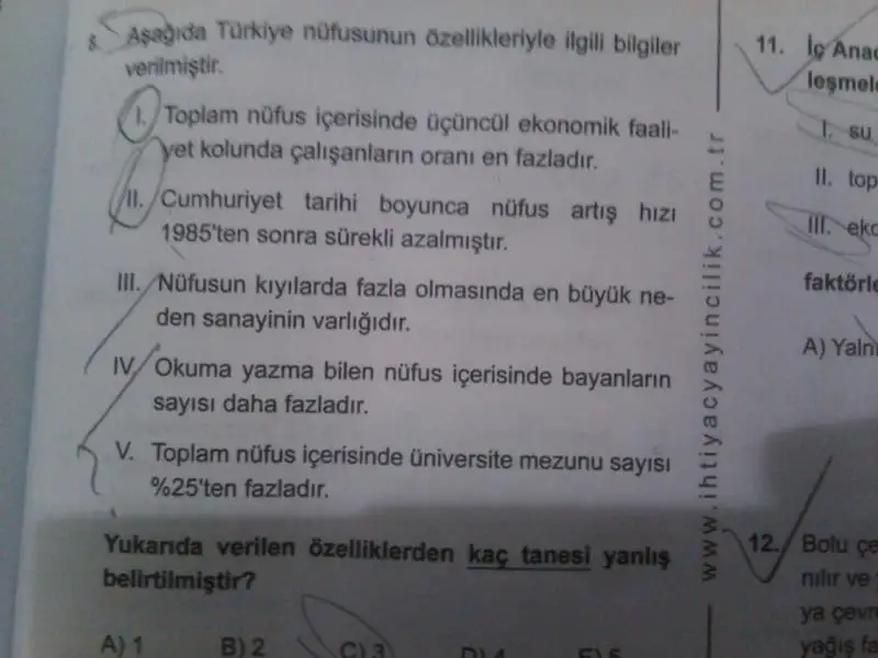 - dediğin gibi III ve IV yanlış ama V de yanlış. Üniversite mezunu sayısı toplam nüfusa göre % 25 değil. 2012 de % 14 civarında imiş