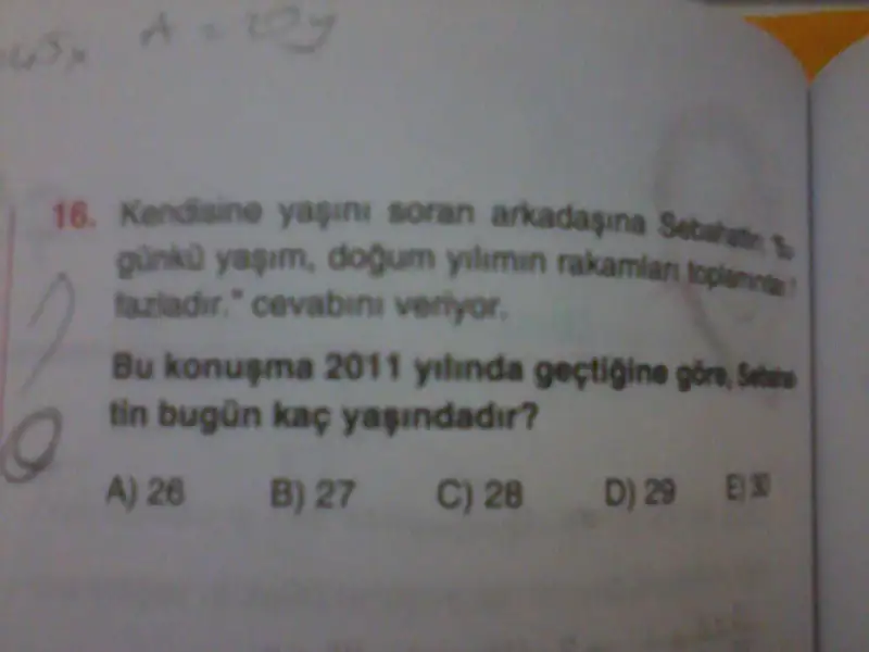 gerçektende yaşı doğum yılı rakamlarının toplamından 7 fazladır. 1+9+8+3 = 21+7 =28dir.