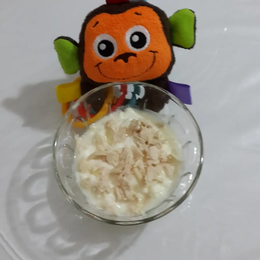 Yapılışı: Küçük küçük doğranan soğanlar ile bütün haldeki tavuk göğsü yeterli miktarda su ile haşlanır. Soğuduktan sonra ceviz büyüklüğünde tavuk eti minik minik olacak şekilde elimizde parçalanır ve yoğurda eklenir. Üzerine zeytinyağ da eklendikten sonra afiyetle bebegimize yedirilir. Geriye kalan tavuk da anneye kalır.