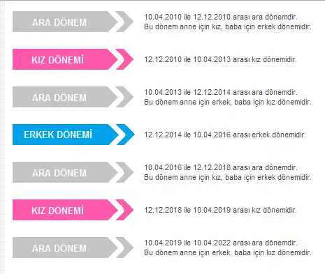 Bende baktım :)) bendede ara donem anne icin kiz baba icin erkek yazıyor ne demek oldu anlamadım