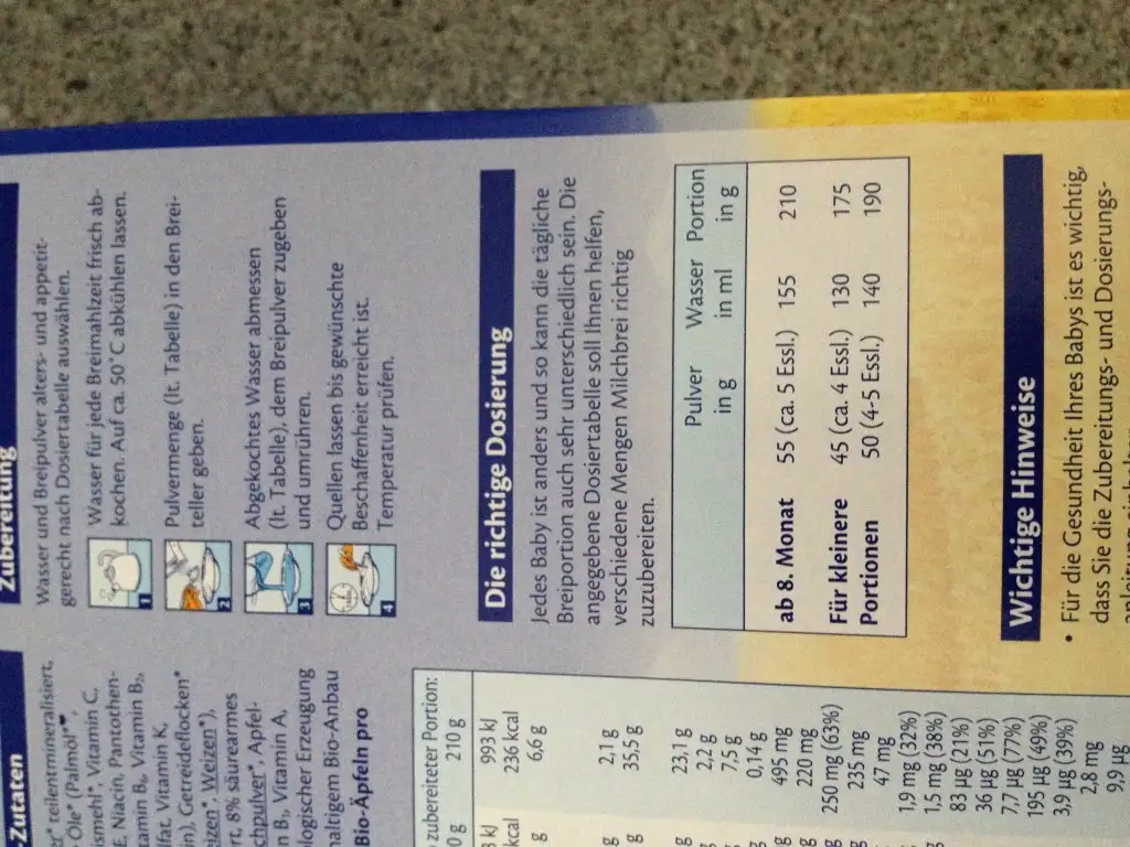 Canım şimdi kutuya baktım,yemek kaşığı yazıyor.ben büyük porsiyon yapıyorum,55gr,sen kücük yap istersen bebişin alışasıya kadar 45gr 4yemek kaşığıTelefondan koyamadim foto canm.beceremedim.aydede ve elmalar var mavili bir kutu.