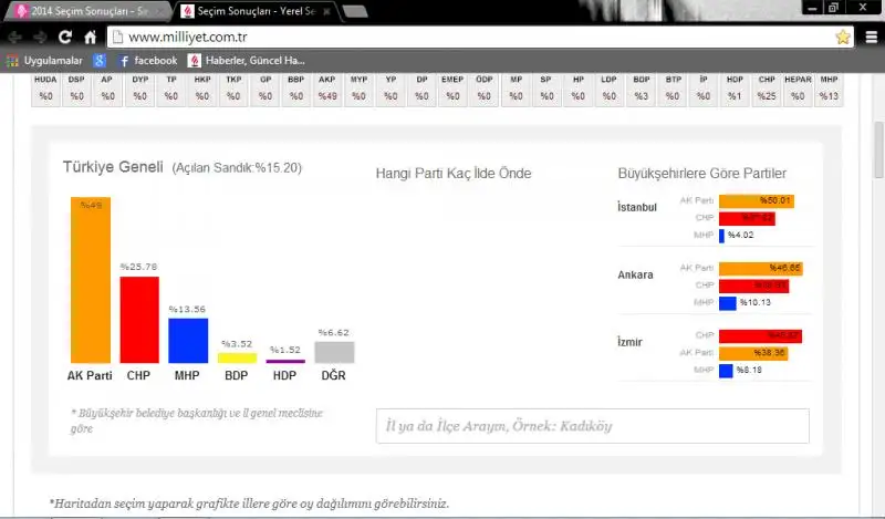 Yaaa kafam karisti birkac kanalda IBB de chp onde ama galiba haberturk te akp acik ara onde:44::44: