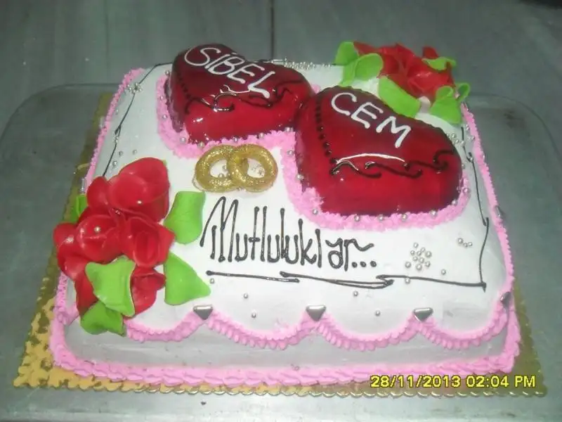 Biz yaptıracak yer bulduk ama bu mekan da dışarıdan kabul etmiyor şuan farkettim ne gıcık adammış ne emmeye ne gömmeye denir ya, paranla bişey diyemiyorsun. Dün gittik, elemanları direkt şeker hamurlu pasta gösterdi hatta çalışan kız arkadaşıma yaptık bundan yastık şeklinde üzerinde yüzük makas dedi, adam yine ablacım sen boşver bakma onlara, sanırım maliyeti artacak ondan böyle yapıyor. Şeytan diyor boşver onca hazırlığı yap evde gitsin.