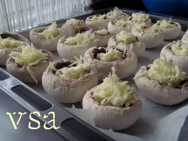 EĞER FIRINDA YAPACAKSANIZ MANTARLARI YIKAYIP TEPSİYE DİZİN.ÜZERLERİNE TUZ SERPİN.TEPSİYE BİRAZ SU EKLEMEYİ UNUTMAYIN.180 DERECE DE 10 DAKİKA PİŞTİKTEN SONRA ÜZERİNE KAŞAR RENDESİ SERPİP TEKRAR SÜRÜN FIRINA.5 DAKİKA DAHA KALIP KAŞARLAR ERİYİNCE SERVİS YAPABİLİRSİNİZ.