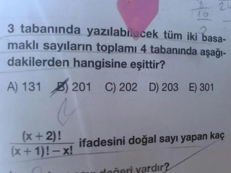 Diğer sorular için elimde kalem kağıt varken tekrar bakayım ama taban aritmetiğim tam sayılmaz yine çözemeyebilirim.