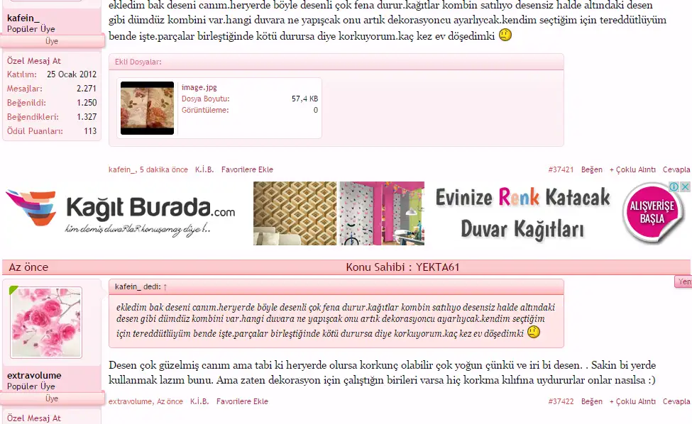 Desen çok güzelmiş canım ama tabi ki heryerde olursa korkunç olabilir çok yoğun çünkü ve iri bi desen. . Sakin bi yerde kullanmak lazım bunu. Ama zaten dekorasyon için çalıştığın birileri varsa hiç korkma kılıfına uydururlar onlar nasılsa :)ekledim bak deseni canım.heryerde böyle desenli çok fena durur.kağıtlar kombin satılıyo desensiz halde altındaki desen gibi dümdüz kombini var.hangi duvara ne yapışcak onu artık dekorasyoncu ayarlıycak.kendim seçtiğim için tereddütlüyüm bende işte.parçalar birleştiğinde kötü durursa diye korkuyorum.kaç kez ev döşedimki