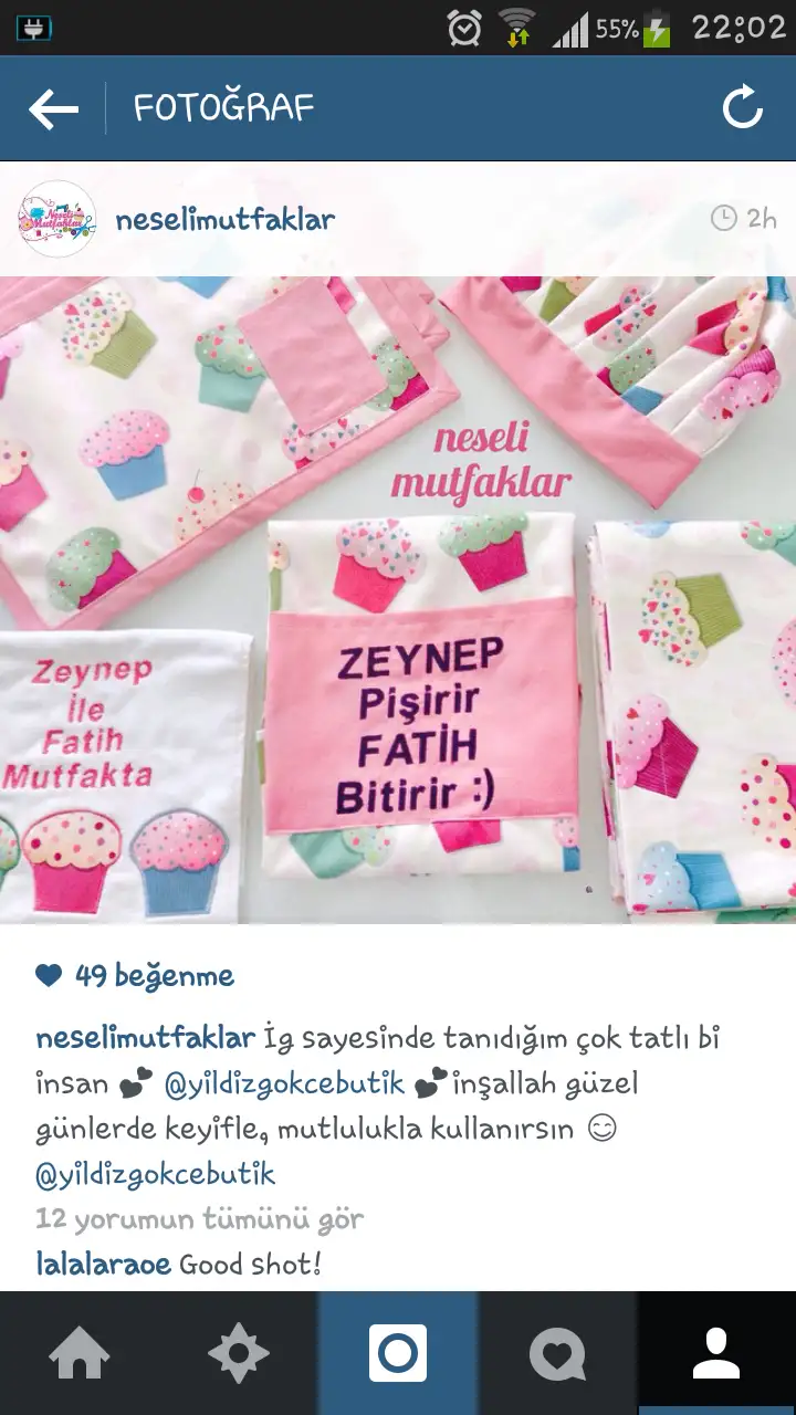 Kızlar madebyimran a mutfak önlüğü yaptırıcam ama şu an şehir dışındaymış sonra dönecek bana.. Instagramdan bir bakın derim :) Aslında kendimin de yapabileceği bir şey ama uğraşmak istemiyorum