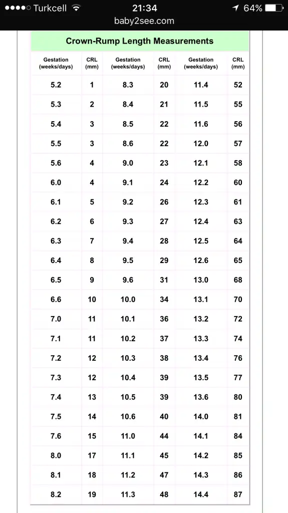 Ay ne guzel haberler bunlar Alice'im ya yerim senin minnos bebisinii. Kuzucum bu arada bebisin yani crl 40 mm ise bebisin 10 haftaliktan buyuk olabilir, bak ekli tabloya minnosmmHu huuu teyzelerim ve çok değerli tüp bebek kardeşlerim 10 haftalık olmuşum 4 cm olmuşum ve renkli ultrasonda annemle babama bacak bacak üstüne attığım sırada yakalandım ayıp oldu ilk izlenimim :) bir dahakine daha uslu durcam annemin heyecandan tansiyonu çıktı beni görünce napsın çok seviyor beni ...doktor amcam annemden bir sürü kan tahlili istedi birde idrar tahlili.28 ekim de doktor amca 2li tarama testimi yapacakmış çok sağlıklı çok iyi bir bebekmişim :) benden haberler şimdilik böyle teyzelerim ve tüp kardeşlerim...