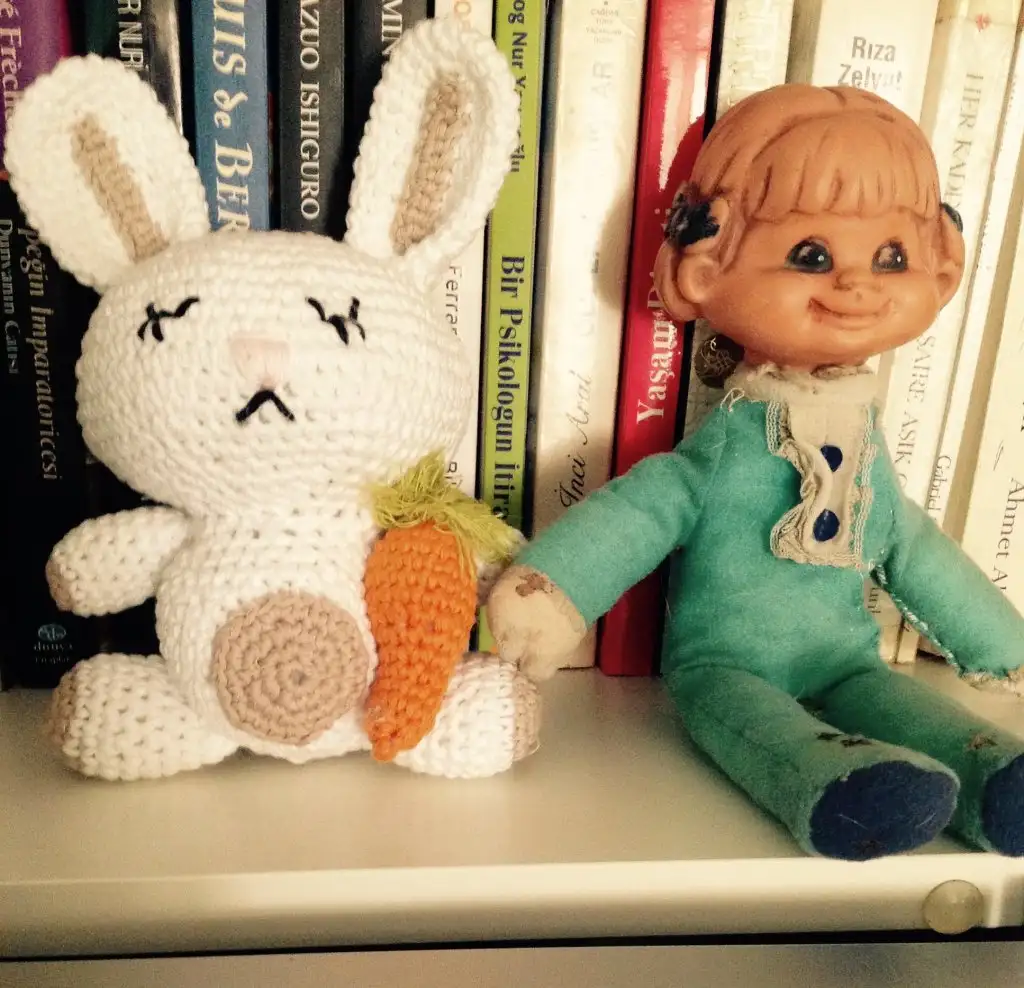 Aştım kendimi valla:) Amigurumi deniyor bu tarz oyuncaklara.Kitanı almıştım haftasonu. Birazda youtube Dan izledim. Mantıını kapınca kolay. Kılık kıyafete henüz cesaretim yok. O işlr daha komplike.
