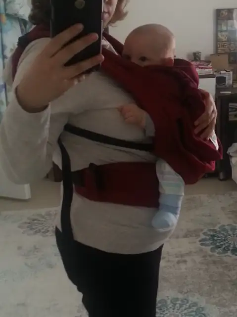 Ayin 28inde 6400 gr 62 cm di. 7 kg olmamistir daha. Altina bi sey koymadim ama yukarıda bağladım belini. Yuksek bel pantalon gibiSeninkinin kafa bayagi yukarida yine benimkinde bildigin gogsume dayandi, tam olarak kangurunun icine gomuldu.