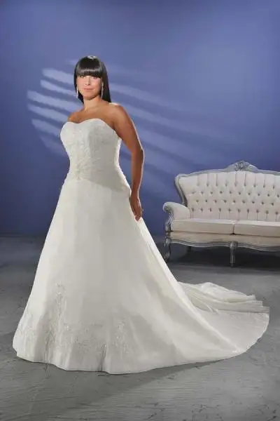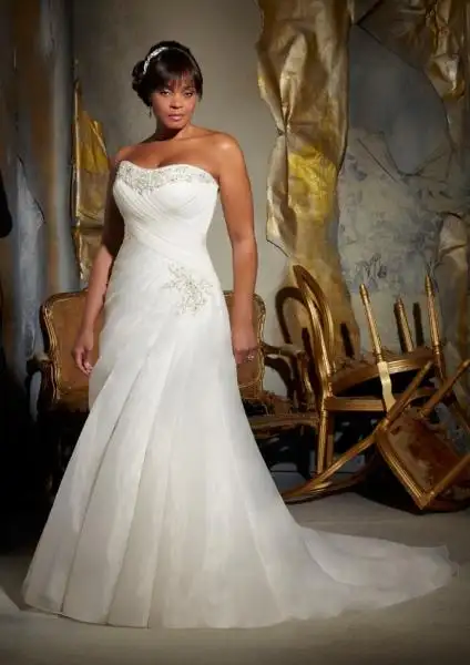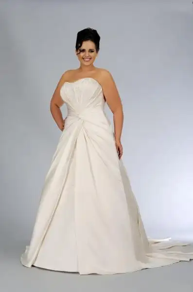 2015 Büyük Beden Straplez Gelinlik Modellerindw pekçok model mevcut. Danteli straplez gelinlikler, taşlı, işlemeli straplez gelinlikler, drapeli straplez gelinlikler vb. Kilolu hanımlar gelinlik seçerken, kabarık gelinliklerden uzak durmasını tavsiye ediyoruz çünkü kabarık etekler ve tüller sizi olduğunuzdan kilolu gösterebilir. Göbek kısmınızda fazlalıklar var ise daha çok göğüs altından oturtmalı ve aşağıya doğru bollaşan gelinlikleri seçebilir ve bu modelleri rahatlıkla giyebilirsiniz.