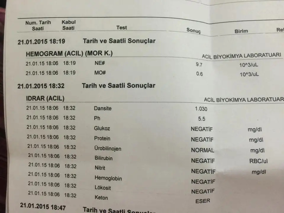 Gerçi bende de sorun yoktu o değerde ama ya sorun olursa diye bir ilaç verdiler o gece önlem amaçlı müşaade altında tutuldum..