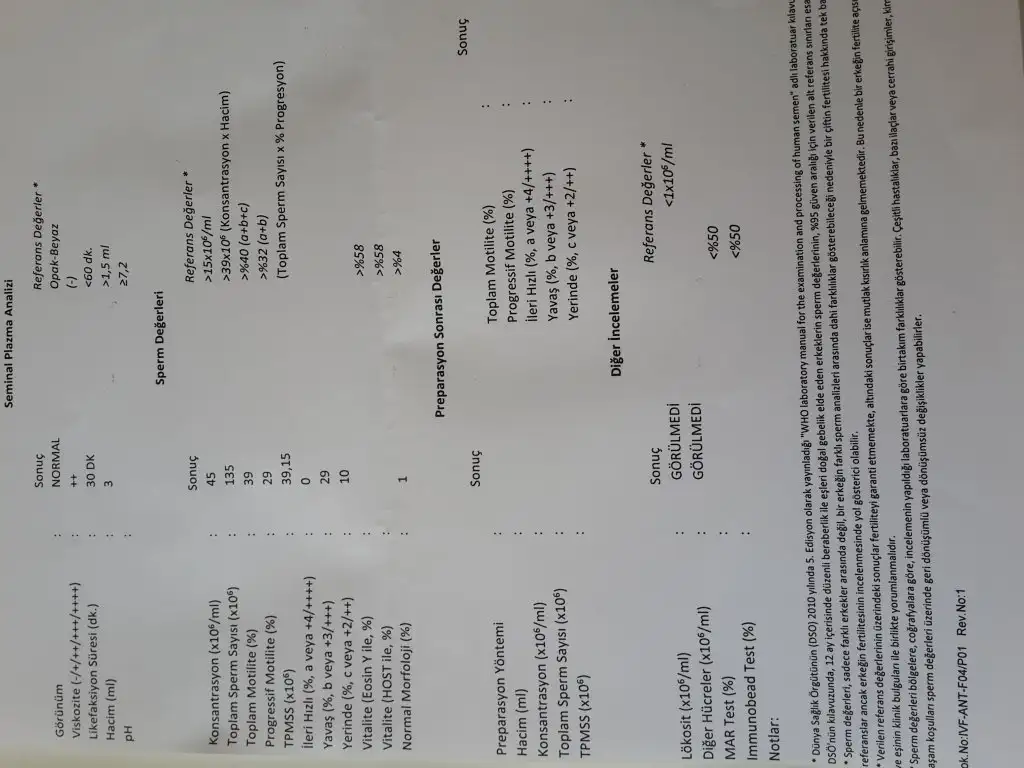 canım sayı iyi ama morfoloji kötü. birde ileri hızlı sıfır çıkmış. asıl ileri hızlı bizim için önemli. bence iyi bir ürologa bu sonuçları bir gösterin. varikosel falan olmasınKızlar bugün iyi bi hastanede ayrıntılı spermiogram testi yaptık. Bakar msnz sonuçlara ? Doktor Yaşımızın küçük old. çok aceleci davrandığımızı söyledi. Hızın biraz düşük old onunda ilaçla hallolacağını söyledi. Ama benim içim hiç rahat değil çünkü hız iyi değil morfoloji ii değil. Lütfen yorum yazın normal yolla bebeğim olur mu benim??