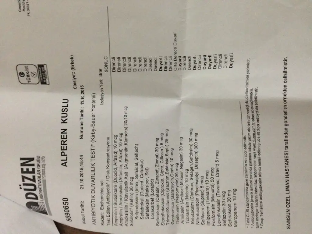 Kızlar bize doktorumuz antibiyotik duyarlılık testi yaptı szinkiler yaptımı acaba ?