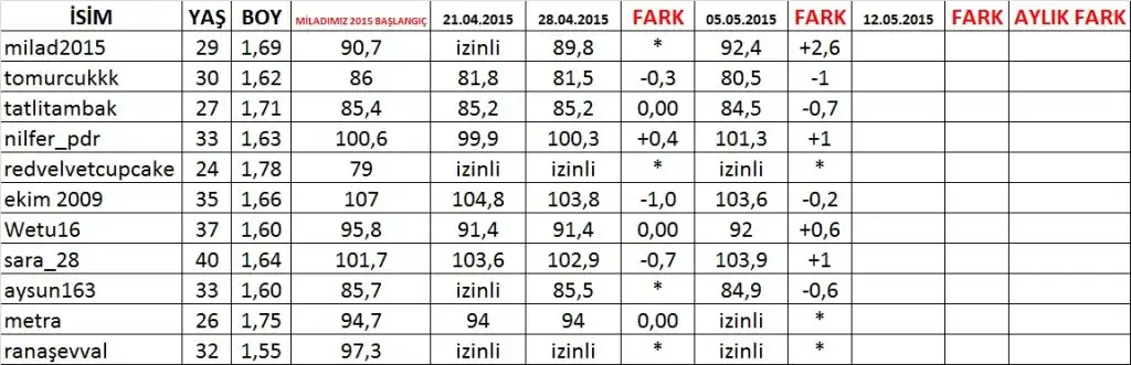 Dunden bugüne 2.2kg fark oldu.