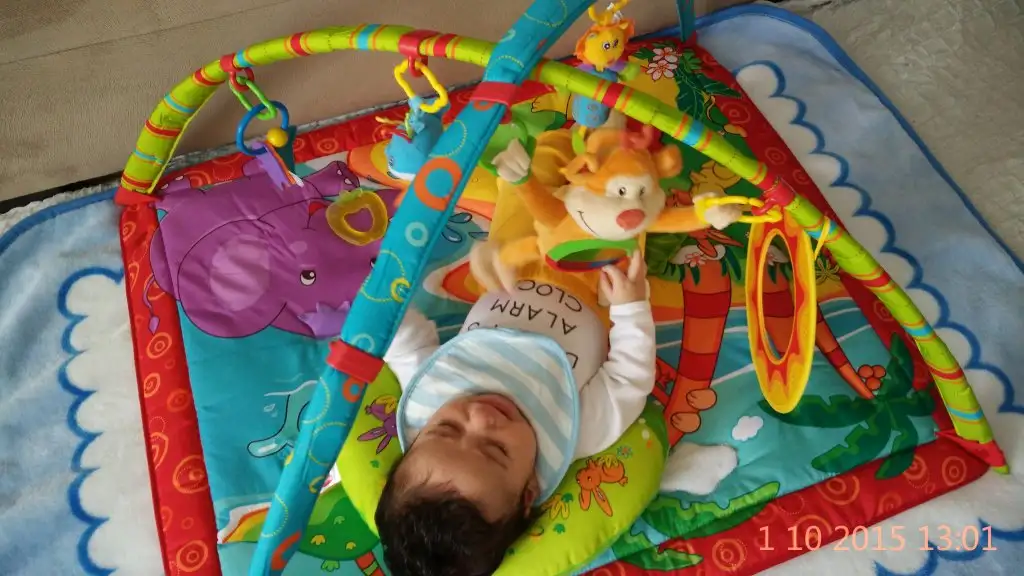 oyun halısı ben aldım tiny love maymun adası. üzerinde oyuncak asma yerleri kayıyor yani yeri değişiyor. bu özelliğini seviyorum. orta çıtçıtı açıp diren yanlara kaydırabiliyorsun askıları. bnm oğlan herşeyden çabuk sıkılır. ben de koltuğa koydum. bizim koltuklar derin. elimde oyuncak tutacağıma asıyorum. yerdeyken çok durmuyor ağlıyor. yanında oturduğumda beni tepikleye tepiklete daha çok oyalanıyor. bez fln değişeceğimde yatıracağımda askıları yana kaydırıyorum.